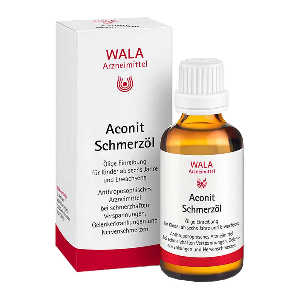 Aconit Schmerzöl. Ölige Einreibung. Anwendungsgebiete gemäß der anthroposophischen Menschen- und Naturerkenntnis. Dazu gehören: Anregung des Wärmeorganismus und Integration von Stoffwechselprozessen bei schmerzhaften entzündlichen Erkrankungen, die vom Nerven-Sinnes-System ausgehen, z.B. Nervenschmerzen (Neuralgien), Nervenentzündungen (Neuritiden), Gürtelrose (Herpes zoster), rheumatische Gelenkerkrankungen. Warnhinweis: Enthält Erdnussöl. WALA Heilmittel GmbH, 73085 Bad Boll/Eckwälden. Zu Risiken und Nebenwirkungen lesen Sie die Packungsbeilage und fragen Sie Ihre Ärztin, Ihren Arzt oder in Ihrer Apotheke.