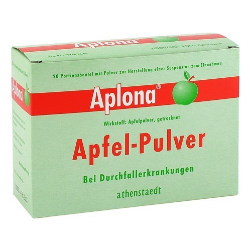 Aplona® Apfelpulver zur Herstellung einer Suspension zum Einnehmen Wirkstoff: Apfelpulver getrocknet Anwendungsgebiete: Traditionell angewendet: zur Besserung der Symptome bei akuten unkomplizierten Durchfallerkrankungen, neben einer ausreichenden Flüssigkeitszufuhr und Diätmaßnahmen. Hinweis: Traditionelles pflanzliches Arzneimittel zur Anwendung/Besserung der Symptome bei akuten unkomplizierten Durchfallerkrankungen ausschließlich aufgrund langjähriger Anwendung. Zu Risiken und Nebenwirkungen lesen Sie die Packungsbeilage und fragen Sie Ihre Ärztin oder Ihren Arzt oder fragen Sie in Ihrer Apotheke. athenstaedt, D-35088 Battenberg (Eder)