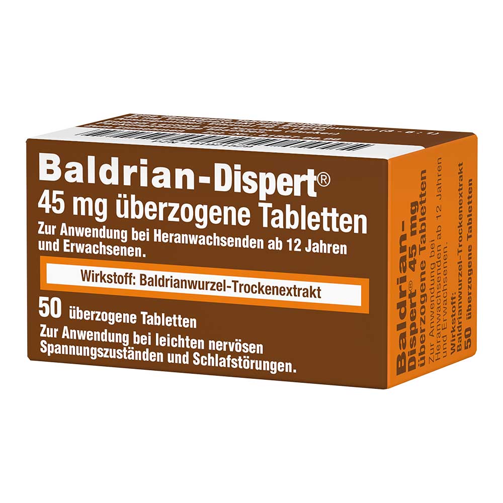 Baldrian-Dispert 45 mg überzogene Tabletten gehört zu den pflanzliches Arzneimitteln und wird bei leichten nervösen Spannungszuständen und Schlafstörungen angewendet .