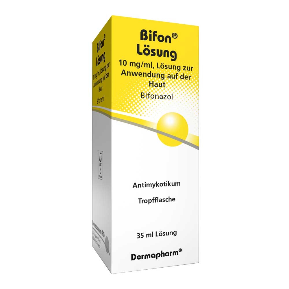 Bifon® Lösung. Wirkstoff: Bifonazol. Anwendungsgebiete: Mykosen der Haut, die durch Dermatophyten, Hefen, Schimmelpilze und andere Pilzarten, wie z.B. Malassezia furfur oder Corynebacterium minutissimum hervorgerufen werden. Stand: 01/2020 Zu Risiken und Nebenwirkungen lesen Sie die Packungsbeilage und fragen Sie Ihre Ärztin, Ihren Arzt oder in Ihrer Apotheke.
