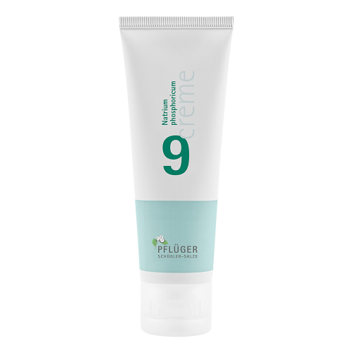 Biochemie Pflüger® Creme Nr. 9 Natrium phosphoricumi. Registriertes homöopathisches Arzneimittel, daher ohne Angabe einer therapeutischen Indikation. Gegenanzeigen: Überempfindlichkeit (Allergie) gegen den Wirkstoff oder einen der sonstigen Bestandteile, Anwendung im und am Auge, Anwendung auf den Schleimhäuten, Anwendung auf geschädigter Haut, Kinder unter 4 Jahren. Nebenwirkungen: keine bekannt. Creme enthält Propylenglycol und Cetylstearylalkohol. Packungsbeilage beachten. Zu Risiken und Nebenwirkungen lesen Sie die Packungsbeilage und fragen Sie Ihre Ärztin, Ihren Arzt oder in Ihrer Apotheke. Homöopathisches Laboratorium Alexander Pflüger GmbH & Co. KG · 33378 Rheda-Wiedenbrück · info@pflueger.de · www.pflueger.de