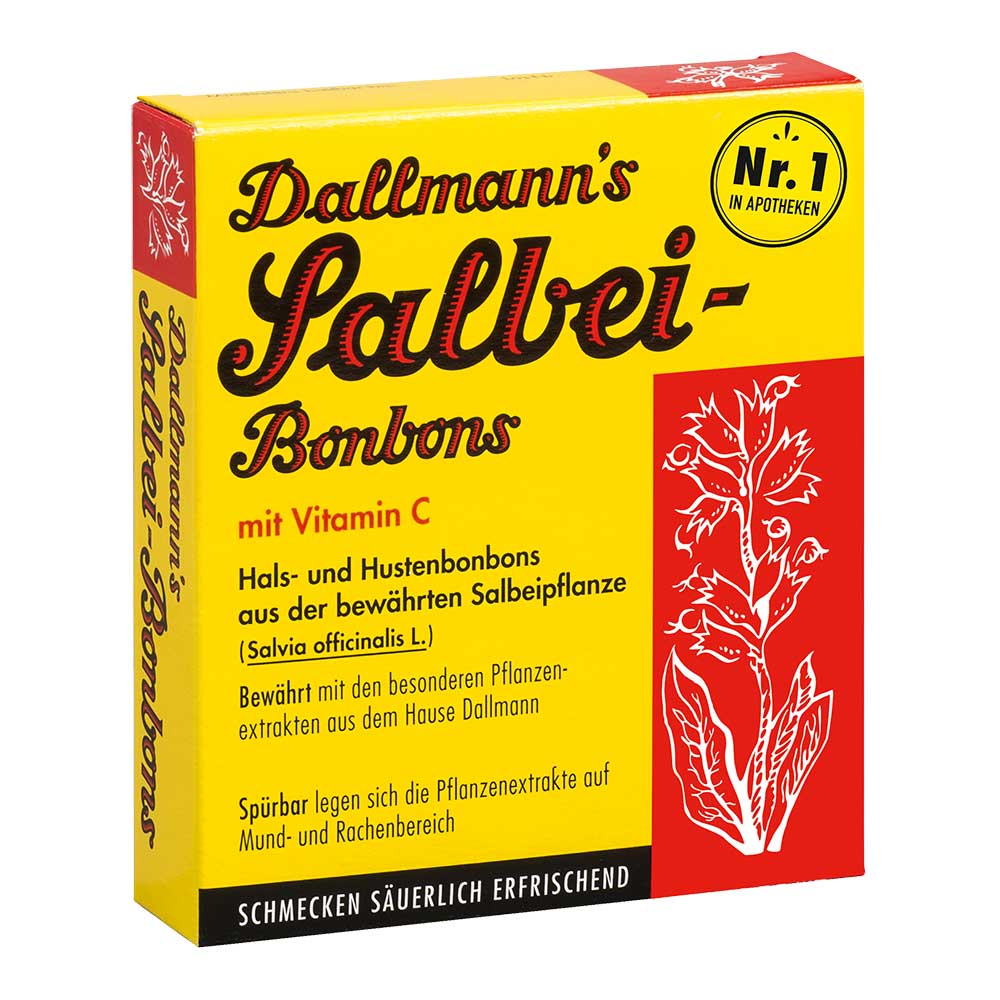 Bei Bedarf 1 Bonbon Dallmann’s Salbei Bonbons lutschen.