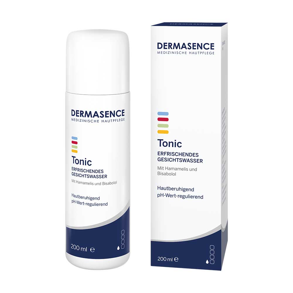 Das Dermasence Tonic wirkt erfrischend und sanft hautklärend, optimiert den pH-Wert nach jeder Reinigung. Hamamelis und Bisabolol sowie Panthenol und Allantoin pflegen und beruhigen die Haut. Mit geringem Alkoholanteil (5%) besonders hautverträglich und auch als mildes After-Shave geeignet. Ausflockung möglich und unbedenklich.