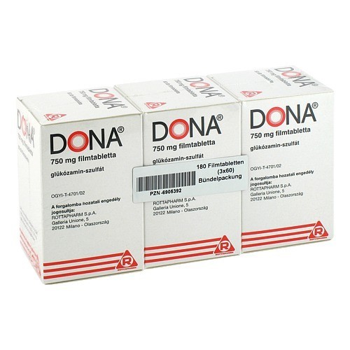 dona® 750 mg Filmtabletten. Anw.: Linderung von Symptomen leichter bis mittelschwerer Arthrose des Kniegelenks. Wirkstoff: Glucosaminhemisulfat. Zu Risiken und Nebenwirkungen lesen Sie die Packungsbeilag und fragen Sie Ihre Ärztin, Ihren Arzt oder in Ihrer Apotheke. Stand 11/22.