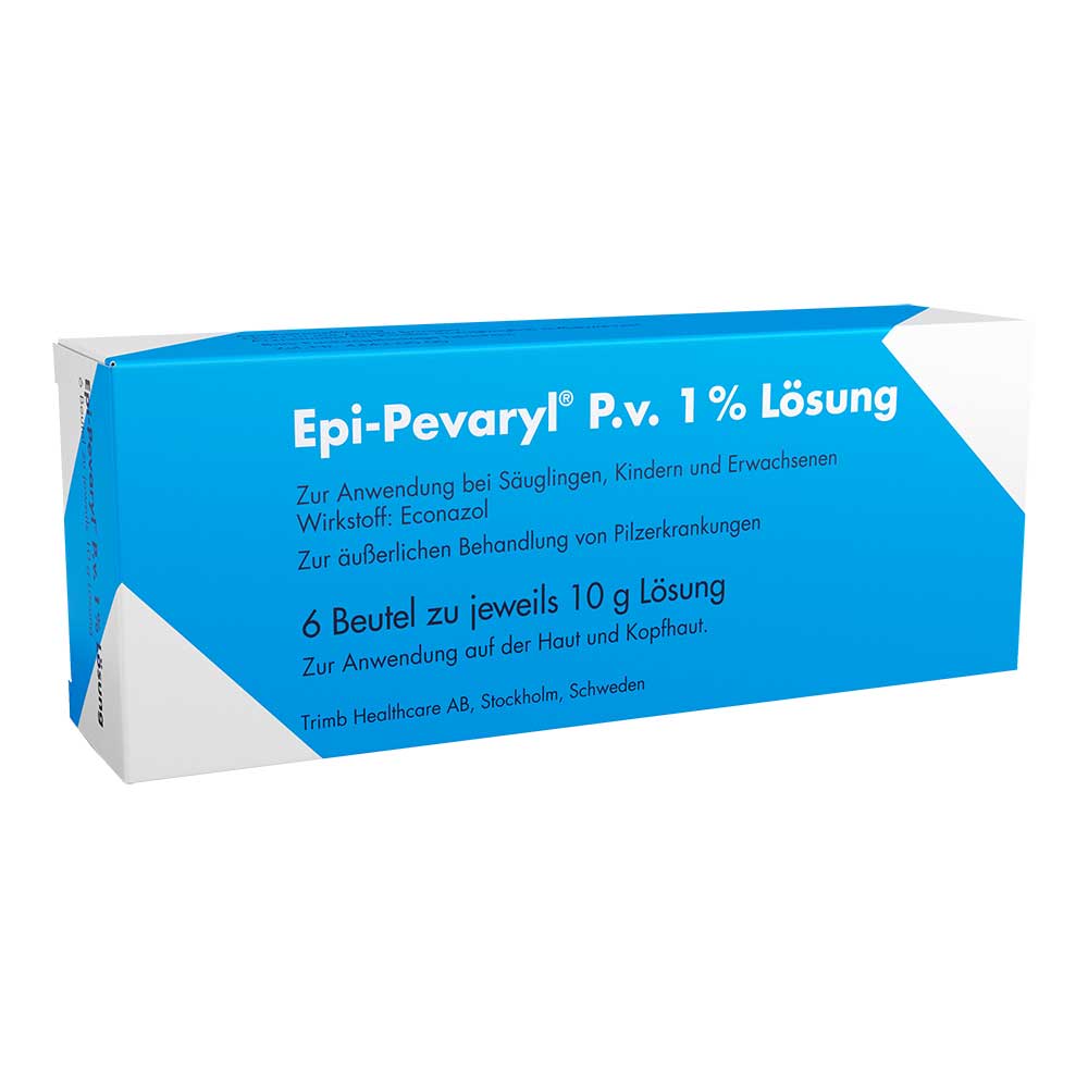Epi-Pevaryl® P.v. 1 % Lösung Wirkstoff: Econazol. Anwendungsgebiet: Zur Therapie der Kleienpilzflechte (Pityriasis versicolor). Die Lösung wird angewendet bei Säuglingen, Kleinkindern und Erwachsenen. Zu Risiken und Nebenwirkungen lesen Sie die Packungsbeilage und fragen Sie Ihre Ärztin, Ihren Arzt oder in Ihrer Apotheke. Trimb Healthcare AB