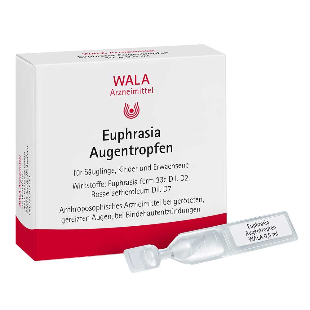In 0,5 ml Euphrasia Augentropfen von Wala sind enthalten: 50 mg Euphrasia ferm 33c Dil. D2 50 mg; Rosae aetheroleum Dil. D7 (HAB, Vs. 5a; Lsg. D1 mit Ethanol 94 % (m/m)).