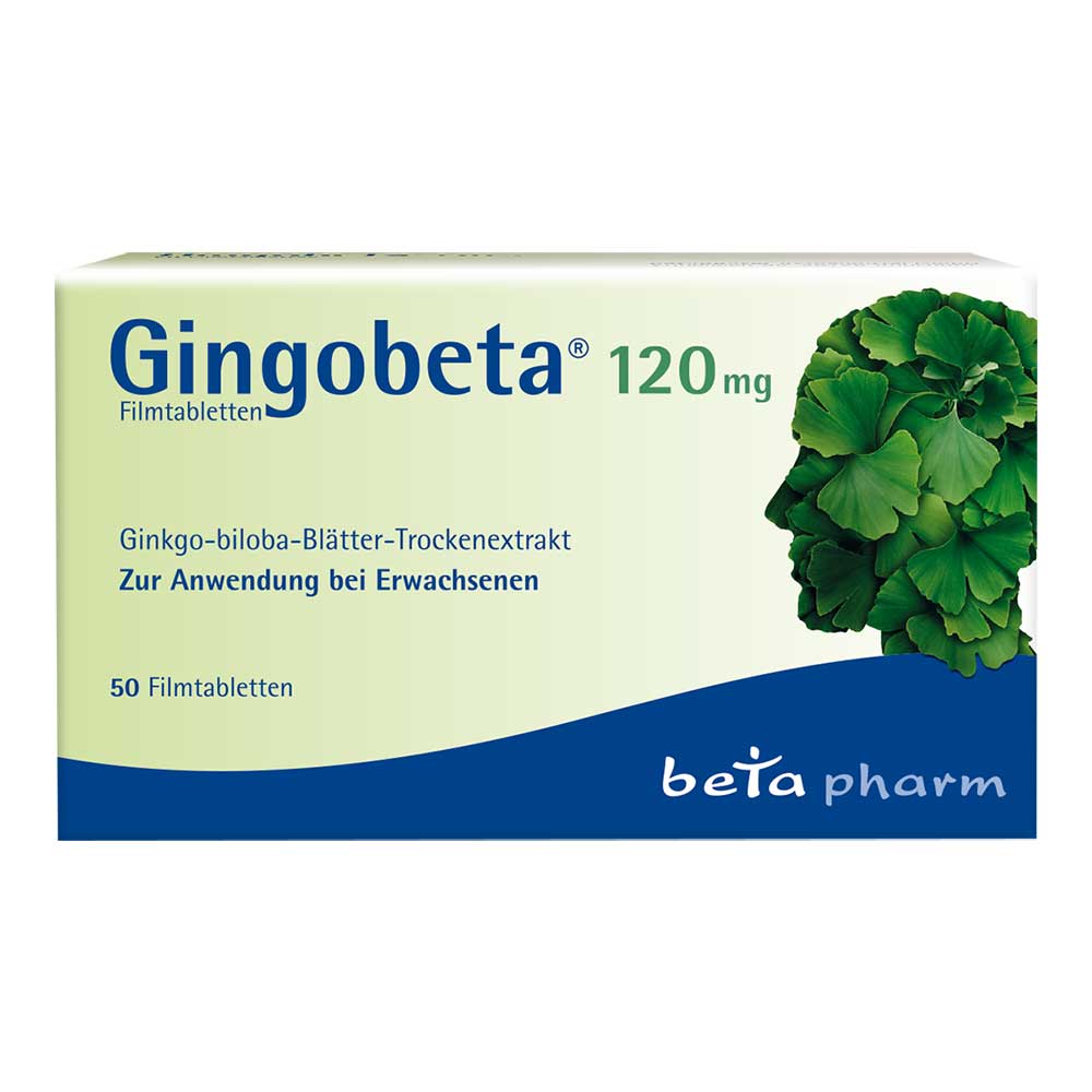 Gingobeta® 120 mg Filmtabletten. Wirkstoff: Ginkgo-biloba-Blätter-Trockenextrakt. Anw.: Gingobeta ist ein pflanzliches AM zur Verbesserung einer altersbedingten kognitiven Beeinträchtigung und der Lebensqualität bei leichter Demenz. Warnh.: enth. Glucose und Lactose. Bitte nehmen Sie Gingobeta® erst nach Rücksprache mit Ihrem Arzt ein, wenn Ihnen bekannt ist, dass Sie unter einer Unverträglichkeit gegenüber bestimmten Zuckern leiden. Zu Risiken und Nebenwirkungen lesen Sie die Packungsbeilage und fragen Sie Ihre Ärztin, Ihren Arzt oder in Ihrer Apotheke. betapharm Arzneimittel GmbH, 86156 Augsburg.