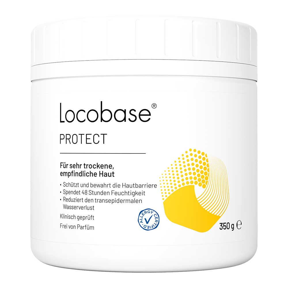 Locobase Protect kombiniert die Eigenschaften aus Creme und Salbe. Sie hat zugleich einen hohen Wasser- und einen hohen Lipidanteil. Sie schützt die Haut durch eine atmungsaktive Lipidbarriere und erhöht deren Feuchtigkeitsgehalt. Sie spendet sofort intensive Feuchtigkeit und verbessert die Elastizität der Haut.