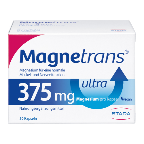 Unser Körper kann Magnesium nicht selbst herstellen. Deshalb ist eine ausreichende Zufuhr über die Nahrung notwendig. Diesen Bedarf können Sie durch Lebensmittel decken. Auch das Nahrungsergänzungsmittel Magnetrans® 375 mg ultra kann zu einer zusätzlichen Versorgung mit Magnesium beitragen. Magnetrans® ultra 375 mg Kapseln helfen Ihnen, mit nur einer Kapsel täglich 100 % des täglichen Magnesiumbedarfs* zu decken und einen Beitrag dazu zu leisten, die körpereigenen Magnesiumdepots aufzufüllen. Magnetrans® 375 mg ultra Kapseln sind laktose- und glutenfrei und geeignet für Veganer.