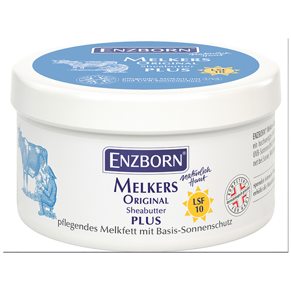 ENZBORN® Melkers Original Sheabutter PLUS ist ein hochwertiges Hautschutzfett mit UVA- und UVB-Sonnenschutz und LSF 10. Es ist somit besonders geeignet bei Sonne, Wind und rauer Witterung. Die natürliche Schutz- und Barrierefunktion der Haut wird unterstützt und die Hautelastizität verbessert.