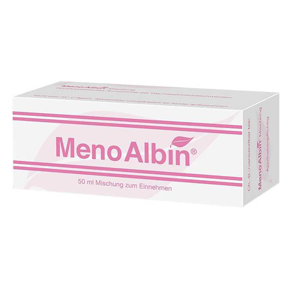 Meno Albin® Mischung. Anwendungsgebiete: Die Anwendungsgebiete leiten sich von den homöopathischen Arzneimittelbildern ab. Dazu gehören: nervöse Beschwerden in den Wechseljahren. Wirkstoffe: Die Wirkstoffe in 10 g (entsprechend 10,6 ml) sind: Valeriana officinalis Urtinktur 0,080 g, Cimicifuga racemosa Urtinktur 0,006 g, Lilium lancifolium Urtinktur 0,004 g. Die sonstigen Bestandteile sind: Ethanol 94% (m/m), gereinigtes Wasser. 30 Tropfen sind ca. 1 ml. Dosierung: Bei akuten Zuständen alle halbe bis ganze Stunde, höchstens 6-mal täglich, je 5 Tropfen einnehmen. Bei chronischen Verlaufsformen 1-3 mal täglich je 5 Tropfen einnehmen. Bei Besserung der Beschwerden ist die Häufigkeit der Anwendung zu reduzieren. Gegenanzeigen: Bei Überempfindlichkeit gegen einen der Wirkstoffe oder einen der sonstigen Bestandteile. Nebenwirkungen: Es sind keine Nebenwirkungen bekannt. Warnhinweis: Dieses Arzneimittel enthält 40 Vol. % Alkohol. Besondere Vorsicht ist erforderlich: Bei Blutungen sowie alle anhaltenden, unklaren oder neu auftretenden Beschwerden. Es sollte ein Arzt aufgesucht werden, da es sich um Erkrankungen handeln kann, die einer ärztlichen Abklärung bedürfen. Rezeptfrei/Apothekenpflichtig. Zu Risiken und Nebenwirkungen lesen Sie die Packungsbeilage und fragen Sie Ihre Ärztin, Ihren Arzt oder in Ihrer Apotheke. Pharmazeutischer Unternehmer: Homviora Arzneimittel Dr. Hagedorn GmbH & Co. KG, Arabellastr. 5, 81925 München