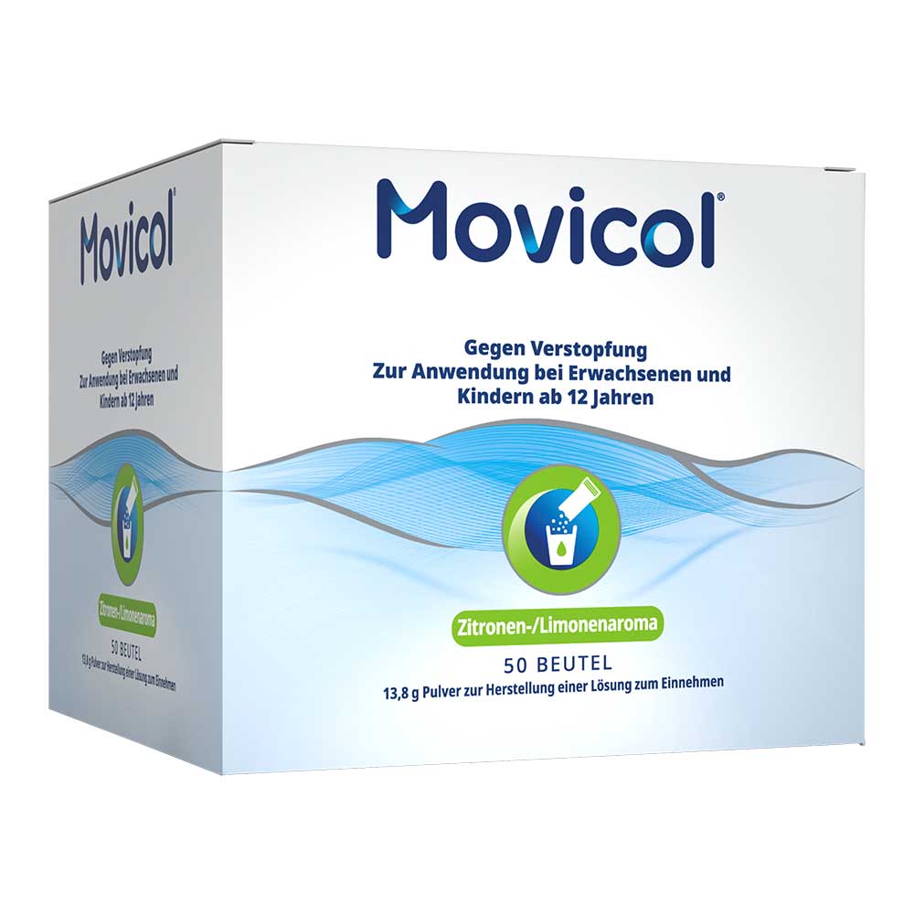 MOVICOL® ist ein gut verträgliches und schnell wirkendes Abführmittel (Laxans) zur Behandlung akuter und chronischer Verstopfung (Obstipation) bei Erwachsenen und Kindern ab 12 Jahren. Das Medizinprodukt erscheint in der Darreichungsform eines Pulvers in Beuteln zur Herstellung einer trinkbaren Lösung mit einem angenehm frischen Geschmack nach Zitrone, Limone, Orange, Schoko, aromafrei oder fertige Trinkbeutel.