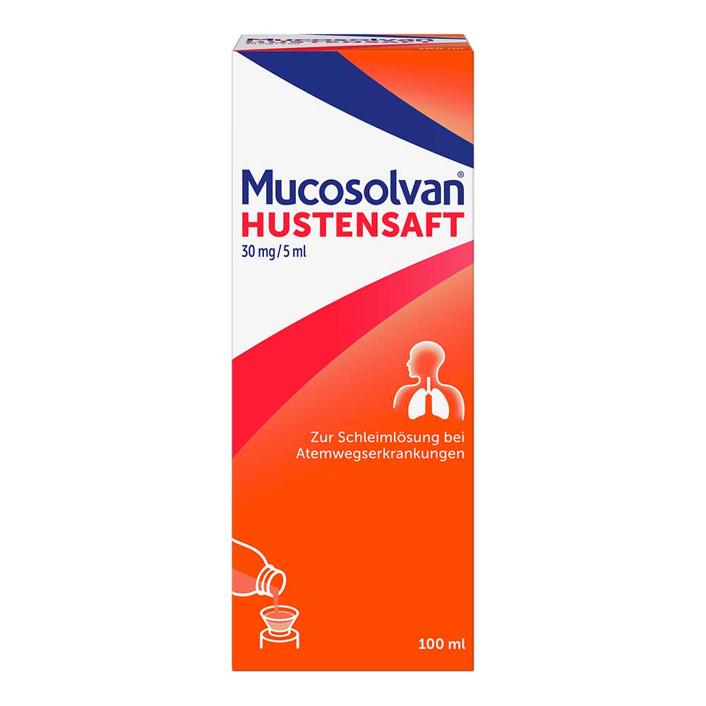 Mucosolvan® Hustensaft 30 mg/5 ml.Wirkstoff: Ambroxolhydrochlorid. Anwendungsgebiet: Zur Schleim lösenden Behandlung bei akuten und chronischen Erkrankungen der Bronchien und der Lunge mit zähem Schleim. Warnhinweis: Enthält Benzoesäure und Propylenglycol. Apothekenpflichtig.Zu Risiken und Nebenwirkungen lesen Sie die Packungsbeilage und fragen Sie Ihre Ärztin, Ihren Arzt oder in Ihrer Apotheke.A. Nattermann & Cie. GmbH, Brüningstraße 50, 65929 Frankfurt am Main. Stand: Juli 2022