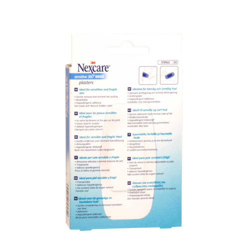 Nexcare™ Sensitive 360° Maxi Pflaster werden mit einem hypoallergenen Klebstoff auf Silikonbasis hergestellt, der für sicheren und zuverlässigen Halt sorgt. Die Nexcare™ Sensitive Hautpflaster sind atmungsaktiv und daher angenehmer auf der Haut.