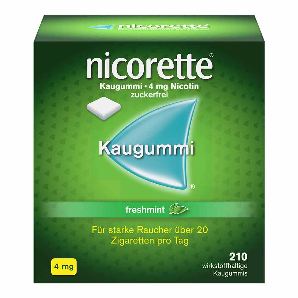 Nicorette® Kaugummi 4 mg freshmint .Wirkstoff: Nicotin (als Nicotin-Polacrilin (1:4)). Anwendungsgebiete: Behandlung der Tabakabhängigkeit durch Linderung der Entzugserscheinungen. Unterstützung der Raucherentwöhnung. Auch zur Verringerung des Zigarettenkonsums (Rauchreduktion), um auf diesem Weg den Rauchausstieg zu erreichen. Warnhinweise: Enthält Levomenthol, Pfefferminzöl, Butylhydroxytoluol (E 321). Zu Risiken und Nebenwirkungen lesen Sie die Packungsbeilage und fragen Sie Ihre Ärztin, Ihren Arzt oder in Ihrer Apotheke. Kenvue Germany GmbH, 41470 Neuss. Stand: 05/2025