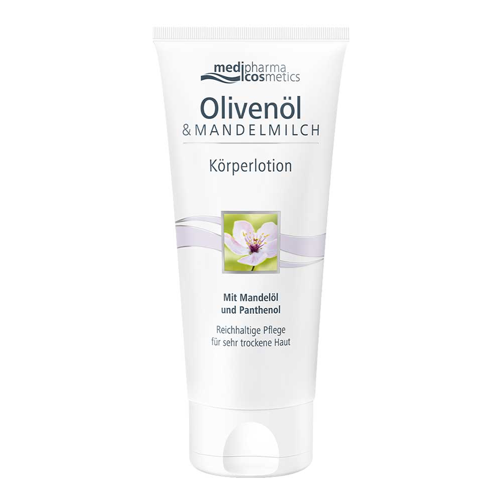 Die Oliven-Mandelmilch-Körperlotion mit der reichhaltigen Pflegekombination aus kaltgepresstem Olivenoel aus der Toskana und hautpflegendem Mandeloel eignet sich ideal zur täglichen Körperpflege bei sehr trockener, sensibler Haut.