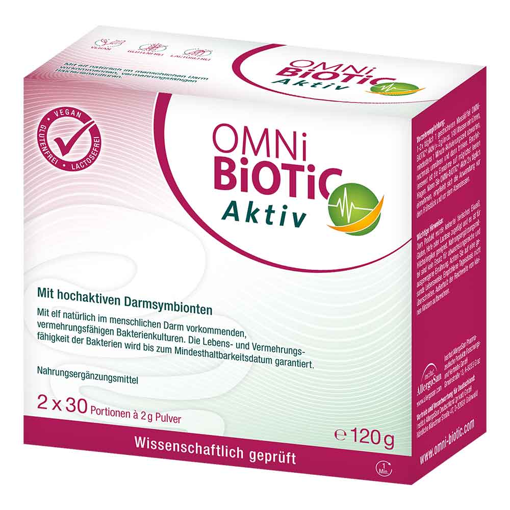 Omni-Biotic Aktiv enthält elf speziell ausgewählte, wissenschaftlich erforschte Bakterienstämme. Die enthaltenen Bifidobakterien, Laktobazillen und Laktokokken besiedeln den gesamten Darm in hoher Keimzahl: Pro Portion (= 2 g) sind 5 Milliarden natürliche Darmbakterien in Omni-Biotic Aktiv enthalten.