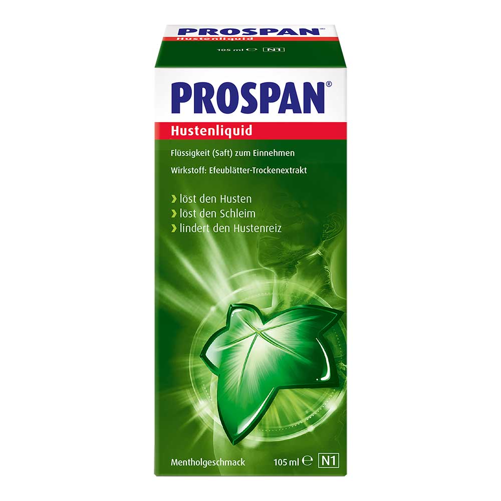 PROSPAN® Hustenliquid, Flüssigkeit z. Einnehmen Wirkstoff: Efeublätter-Trockenextrakt. Anwendungsgebiete: Zur Besserung der Beschw. b. chron-entzündl. Bronchialerkrank.; akute Entzünd. der Atemwege m. der Begleiterschein. Husten. Hinweis: Bei länger anhaltenden Beschw. oder bei Auftreten von Atemnot, Fieber wie auch bei eitrigem oder blutigem Auswurf, umgehend Arzt aufsuchen. Zu Risiken und Nebenwirkungen lesen Sie die Packungsbeilage und fragen Sie Ihre Ärztin, Ihren Arzt oder in Ihrer Apotheke. Stand der Information: September 2021. Engelhard Arzneimittel GmbH & Co.KG, Herzbergstr. 3, 61138 Niederdorfelden