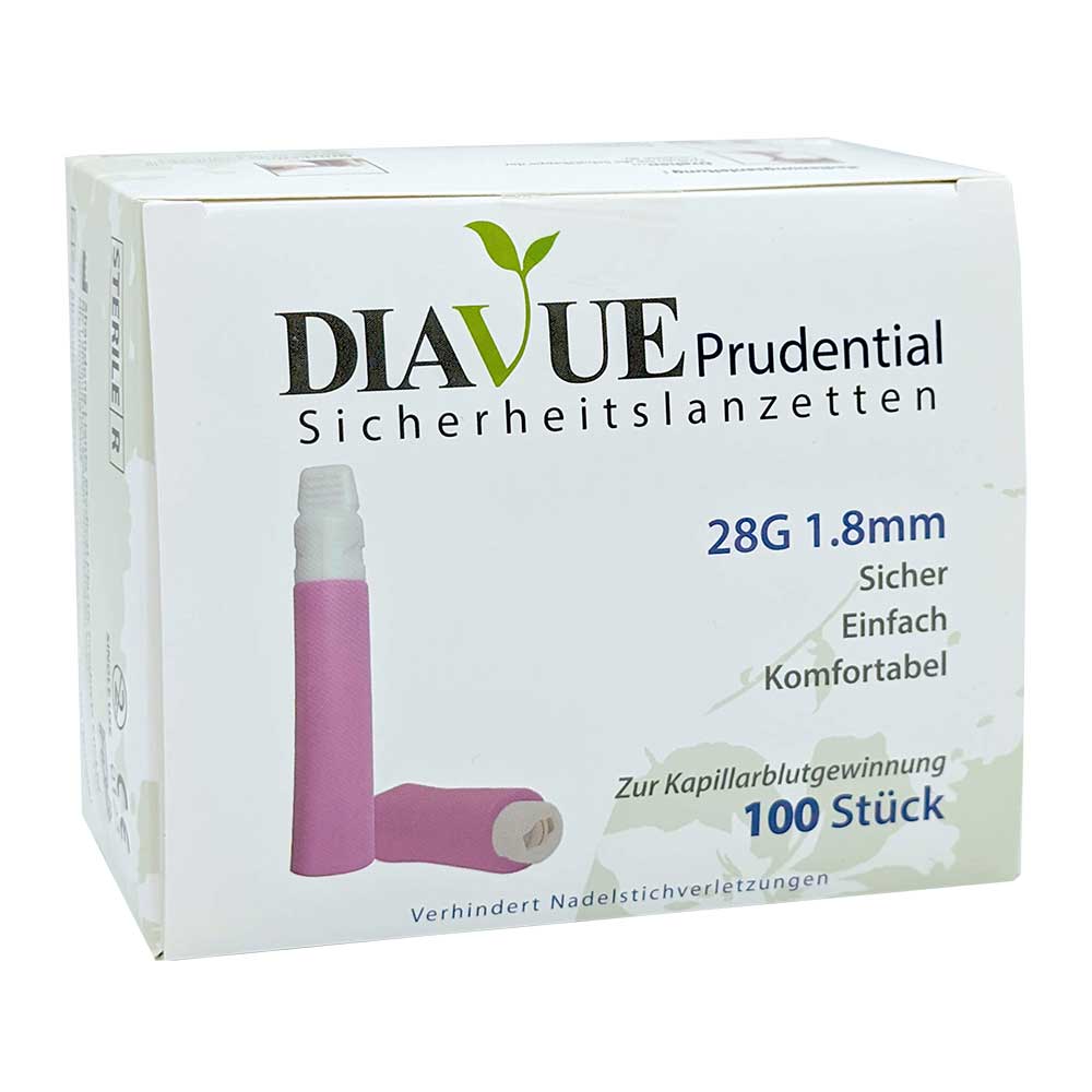 Die Diavue Prudential Sicherheitslanzetten machen die Blutentnahme einfach und sicher. Sie können nur einmal ausgelöst werden. Nach dem Auslösen lässt der Schutzmechanismus die Nadel wieder verschwinden. Sowohl der Anwender als auch der Patient sind vor Kontamination und versehentlichen Stichen sicher.