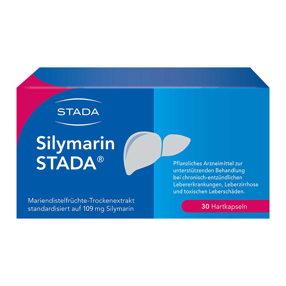 Silymarin STADA® 109 mg Hartkapseln Zur Anwendung bei Erwachsenen Wirkstoff: Mariendistelfrüchte-Trockenextrakt standardisiert auf 109 mg Silymarin. Angewendet zur unterstützenden Behandlung bei chronisch-entzündlichen Lebererkrankungen, Leberschrumpfung (Leberzirrhose) und durch Lebergifte verursachte (toxische) Leberschäden. Das Arzneimittel ist nicht zur Behandlung von akuten Vergiftungen bestimmt. Hinweis: Enthält Natrium. Zu Risiken und Nebenwirkungen lesen Sie die Packungsbeilage und fragen Sie Ihre Ärztin, Ihren Arzt oder in Ihrer Apotheke. STADA Consumer Health Deutschland GmbH, Stadastraße 2–18, 61118 Bad Vilbel Stand: April 2023