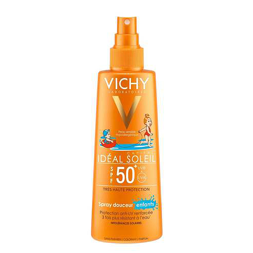 Um gegen die verhängnisvolle Wirkung der UV-Strahlen anzukämpfen und zum Schutz des wertvollen genetischen Kapitals der Kinderhaut integriert Laboratoires Vichy im Kinderspray ein Filtersystem mit breitem UVA-UVB-Spektrum, das auf Grundlage von Mexoryl® auch photostabil ist.