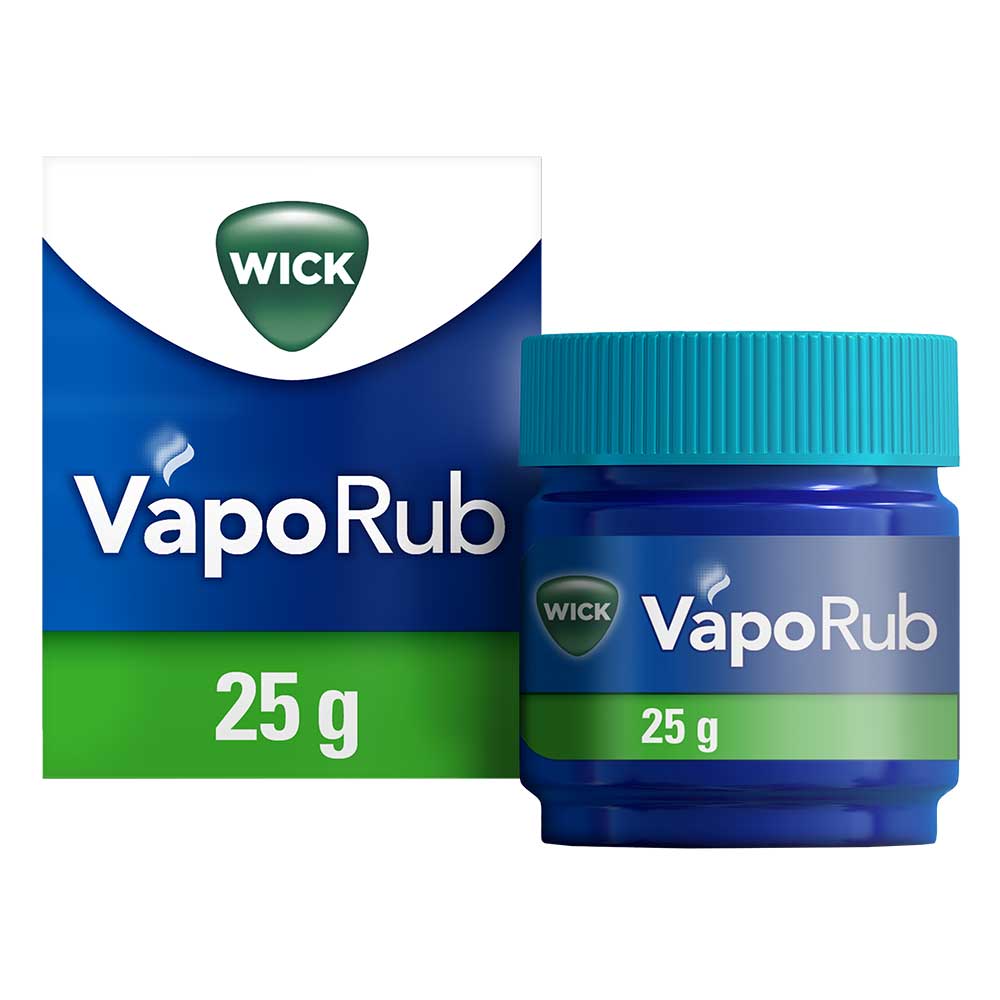 WICK VapoRub Erkältungssalbe Anwendungsgebiete: Zur Besserung des Befindens bei Erkältungsbeschwerden der Atemwege (Schnupfen, Heiserkeit, Entzündung der Bronchialschleimhaut mit Symptomen wie Husten und Verschleimung). Freiverkäuflich. Stand: Juli 2023 Zu Risiken und Nebenwirkungen lesen Sie die Packungsbeilage und fragen Sie Ihre Ärztin, Ihren Arzt oder in Ihrer Apotheke. WICK Pharma, Zweigniederlassung der Procter & Gamble GmbH, D-65823 Schwalbach