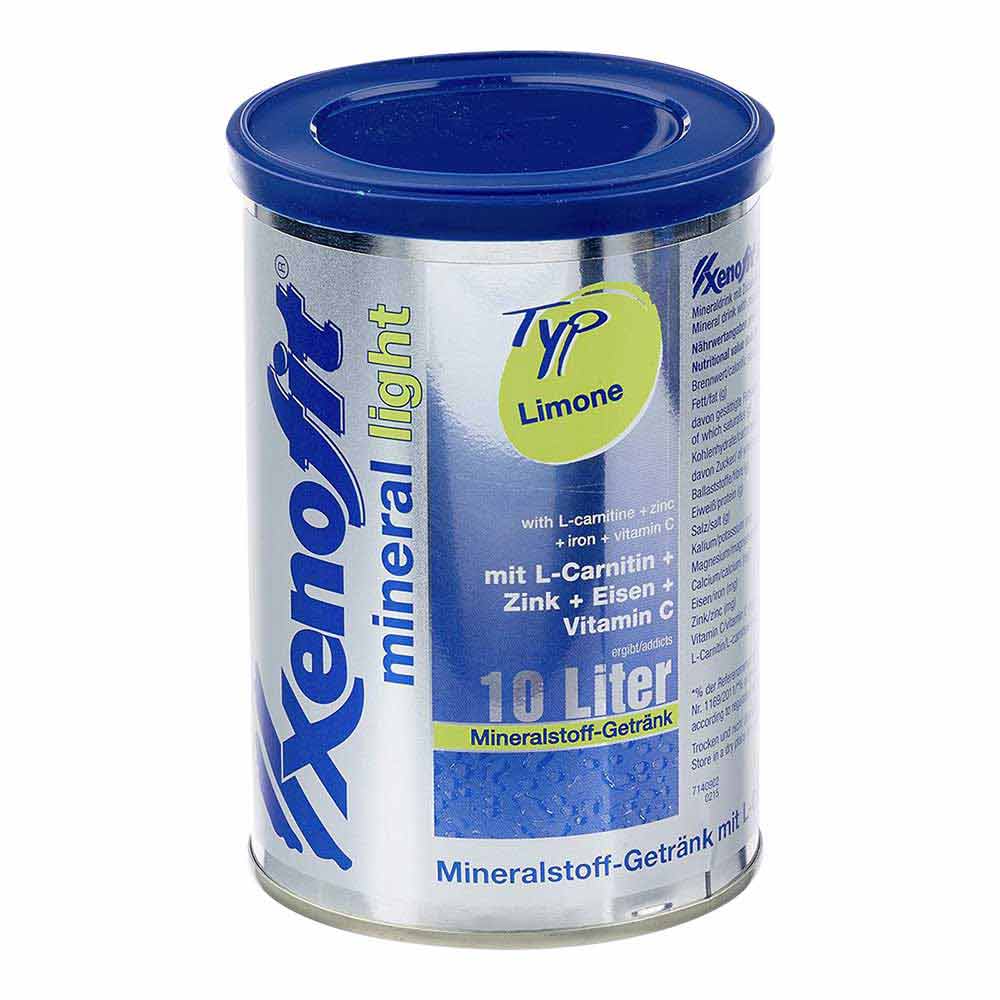 Maisdextrin (löslicher Ballaststoff) 30,8%, Säuerungsmittel Zitronensäure, Fruktose, Kaliumbicarbonat (7,9g/100g), Magnesiumcitrat (7,4 g/100g), Calciumcarbonat (3,8g/100g), L-Carnitintartrat (2,26 g/100g), Aroma (Limone, Grapefruit), Süßungsmittel Cyclamat und Saccharin, Vitamin C (0,3 g/100 g), Zinkgluconat (0,27 g/100 g), Eisengluconat (0,27g/100 g).