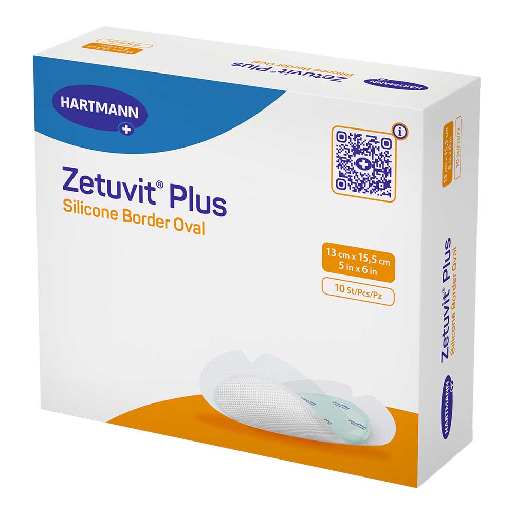 Zetuvit Plus Silicone Border ist eine selbsthaftende, superabsorbierende Wundauflage in ovaler Form zur Versorgung von mäßig bis stark exsudierenden Wunden. Die Kombination aus hoher Absorptionsfähigkeit und sanftem Hautkontakt macht sie besonders geeignet für empfindliche oder schwer zugängliche Wundbereiche. Der wasserfeste Silikon-Haftrand sorgt für sicheren Halt und schützt die Wunde zuverlässig vor äußeren Einflüssen wie Bakterien und Viren.